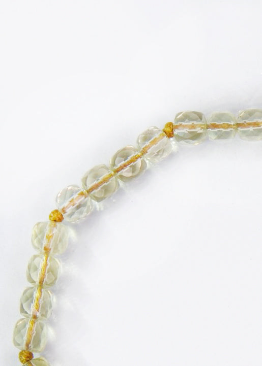 Natural stones cut into 4mm faceted cube rondelles on a hand-knotted adjustable cord bracelet.